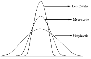 The kurtosis value describes the peakedness of a distribution. Sharply peaked distributions have positive kurtosis (kurtosis > 0) and are called leptokurtic. Flatter than normal distributions have negative kurtosis (kurtosis < 0), also called platykurtic. A normal distribution has a kurtosis = 0 and it is called mesokurtic.